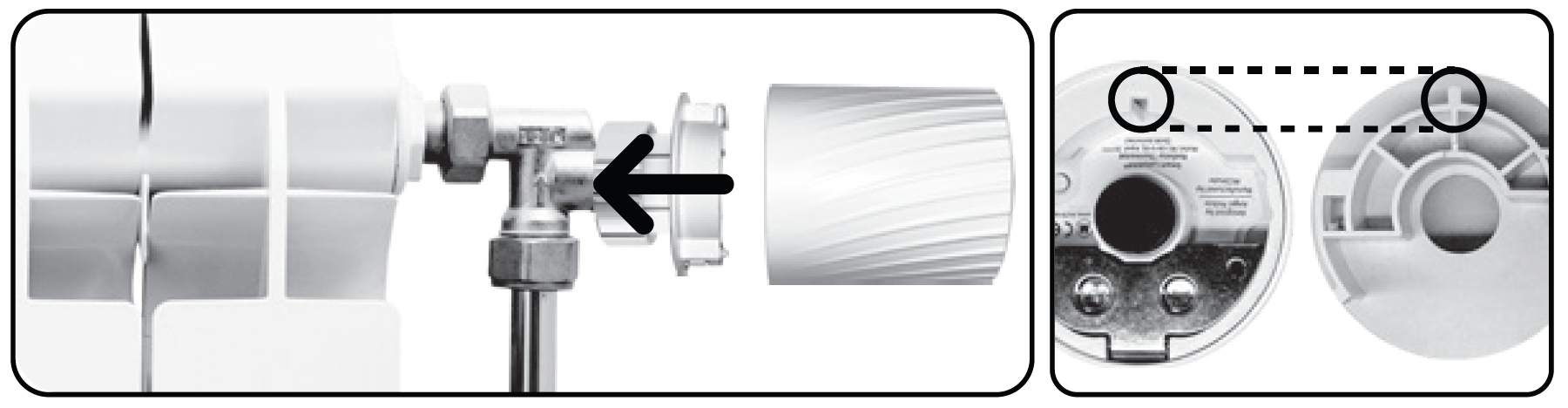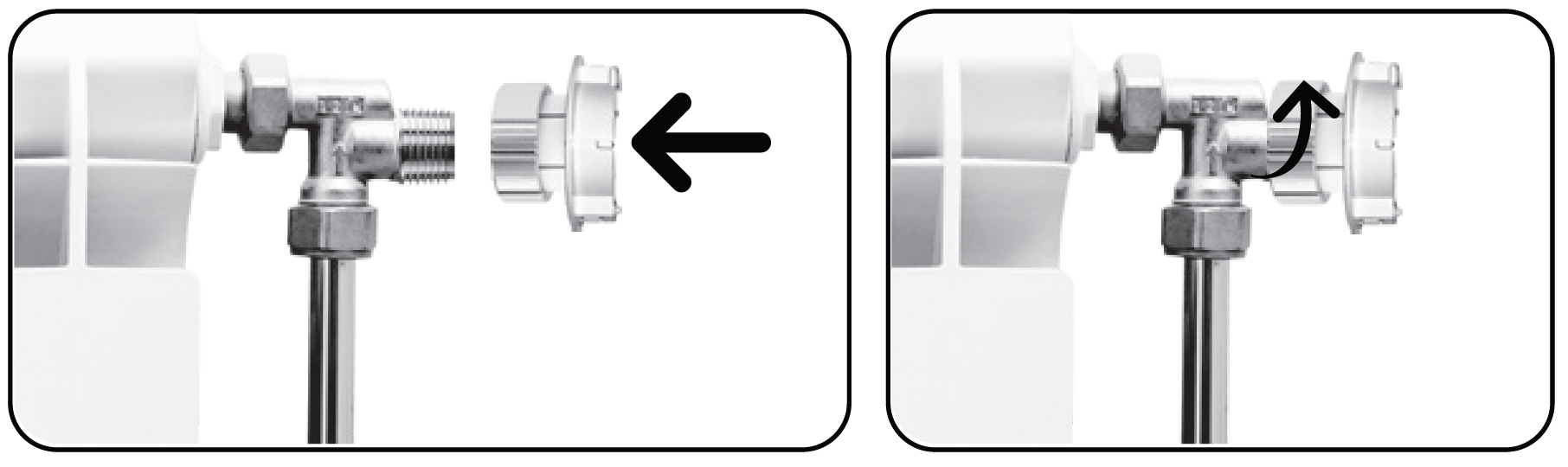 - Die Rückplatte des Ventils auf dem Heizkörper installieren (Benutzen Sie evtl. passende Adapter)