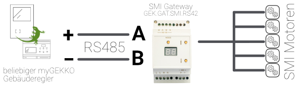 In unserem Beispiel zeigen wir den Anschluss des myGEKKO SMI Gateways „GEK.GAT.SMI.RS42“ direkt an den Controller: